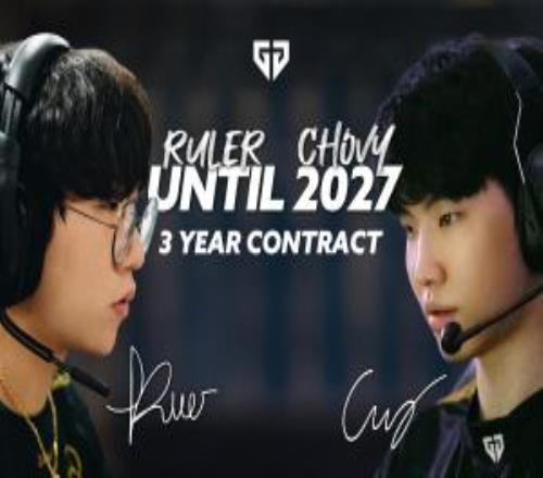 上单Kiin(2026年底到期),打野Canyon(今年年底到期),中单Chovy+下路Ruler(2024宣布续约三年,合同2027年底到期),辅助Duro(刚刚官宣续约)。