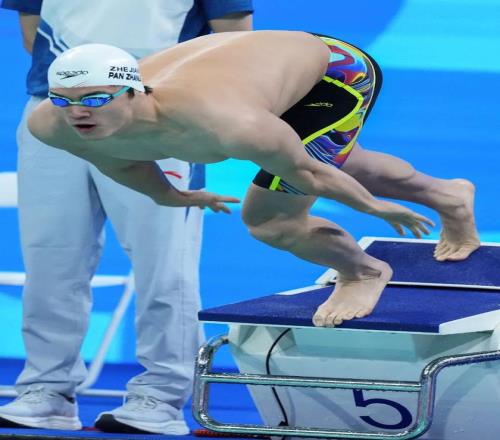 100米自由泳预赛中,第5组出场的潘展乐斩获小组第一,游出49秒63,但成绩低于福建队的刘吴狄(49秒39)和山东队的刘耀杰(49秒62),很显然,潘展乐有所保留,半决赛中,潘展乐第2组出发游出48秒13,排名所有选手的第一位。