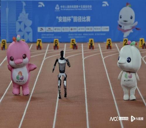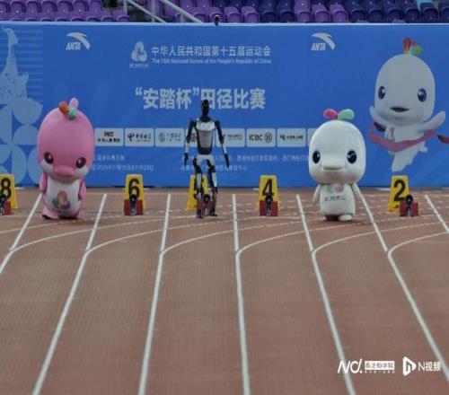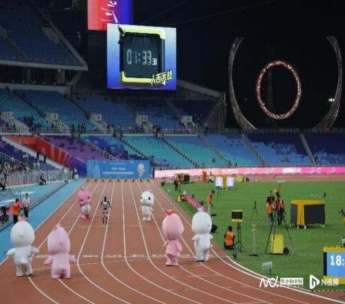 你猜谁赢了飞人大战前,十五运会吉祥物与机器人竞赛百米跑