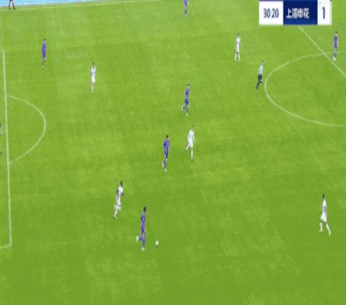 上半场补时阶段,高天意面对三人防守完成过人,之后的射门被挡出了底线。