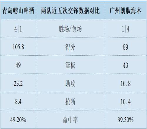 上赛季两队交手4次,青岛崂山啤酒4胜0负。