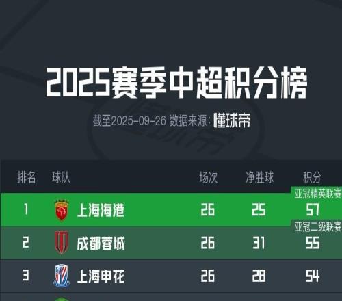 中超争冠格局剧变!海港占据榜首,成都丢分仍有希望,申花仍陪跑