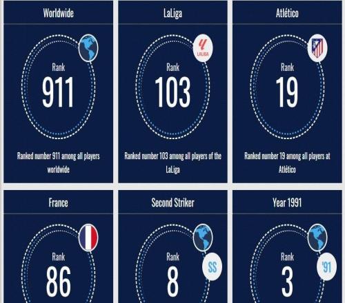 格列兹曼跌至1200万欧,在同龄球员中位列第三